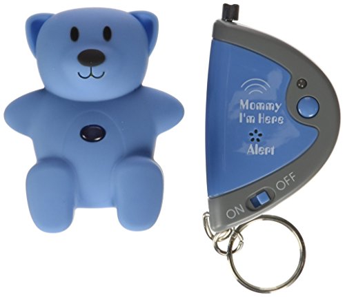 Der Mommy I'm Here CL305 Blauer Alarm ist wie eine schnurlose Leine für Kinder! Es ist ein einfach zu benutzendes und modisches Ortungsgerät, das seine eigene Radiofrequenz benutzt, um ihr Kind bis zu 45m weit weg zu orten. Das ist in etwa die halbe Länge eines Footballfeldes. Der CL305 hat einen Abstandmesser, so dass falls ihr Kind etwa 9m weit weg von ihnen und ihrem Schlüsselanhängersender ist, die neue ALARM Eigenschaft ihren Schlüsselanhänger zum piepsen bringt und Sie darauf aufmerksam macht, dass sich ihr Kind außer Sichtweite befindet. Dann können Sie einfach den Knopf an ihrem Schlüsselanhängersender drücken, um schnurlos den 90 Dezibel Alarm an dem Teddybärempfänger ihres Kindes auszulösen und ihr Kind zu finden und auf die Situation aufmerksam zu machen, in der sich ihr Kind befinden könnte!